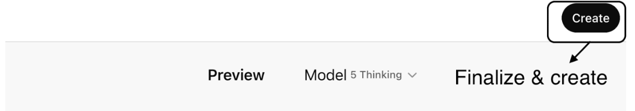 After ensuring setup, you can proceed to finalize and create this custom GPT.