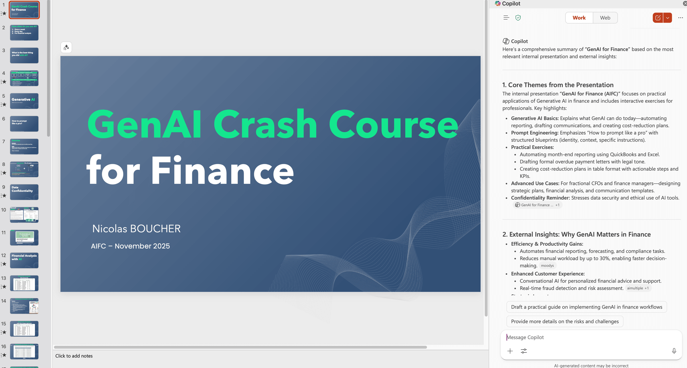 So take 30 minutes this week. Pick one upcoming presentation. Use the workflow I showed you. Build the structure in ChatGPT, generate the slides in Copilot, then refine them.