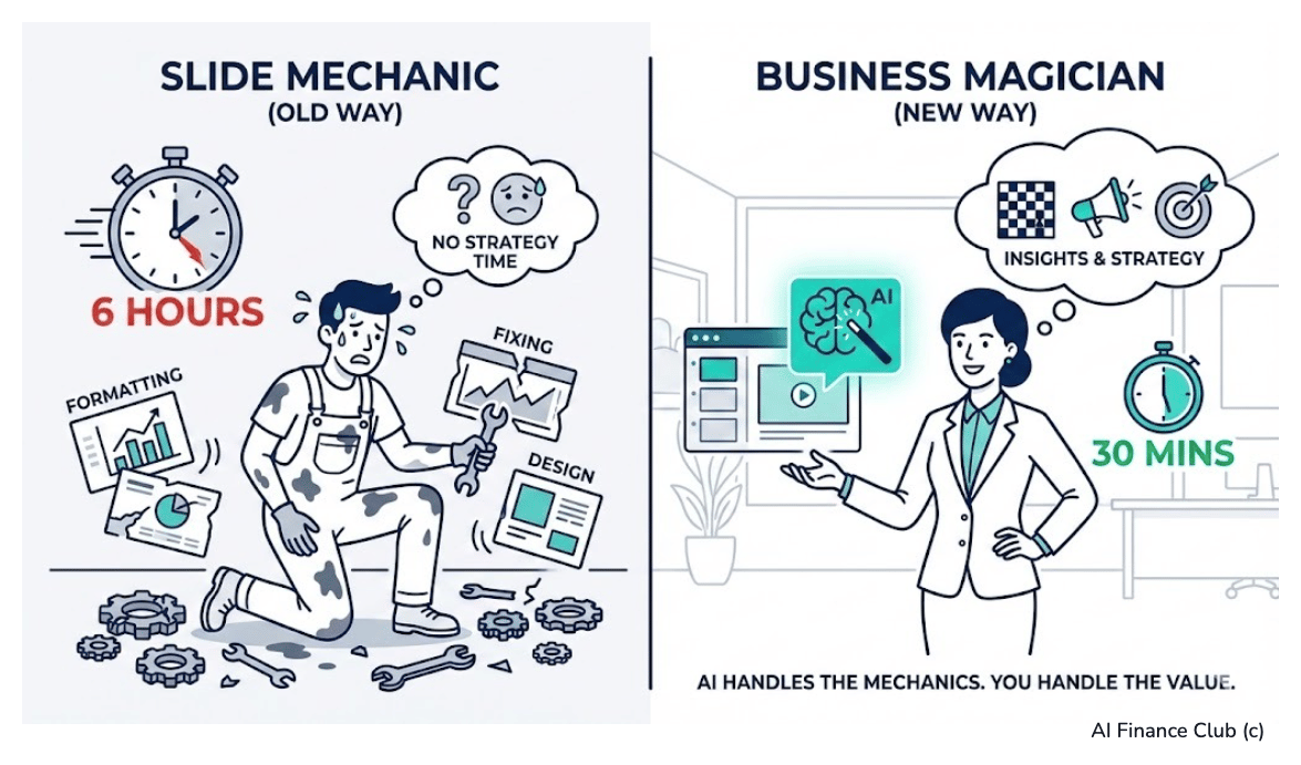 Your value as a finance leader isn't in your ability to format PowerPoint slides. It's in your ability to interpret data, challenge assumptions, and guide decisions.