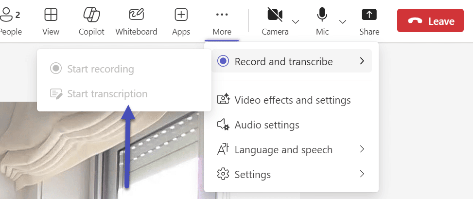 Before your meeting starts (or right at the beginning), click the three dots menu in Teams and select "Record and transcribe."