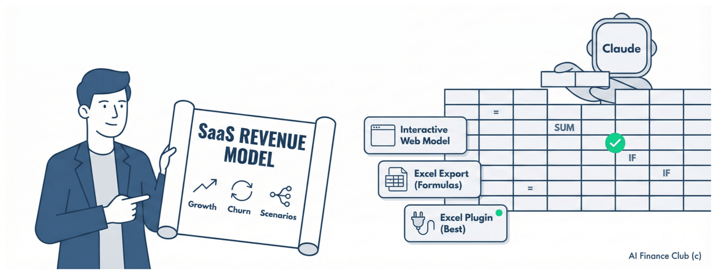 AI lets you operate like an architect of financial models. You still need to know what a good SaaS revenue model looks like. You still need to understand growth rates, churn, and scenario logic (that's your expertise and AI cannot replace it).