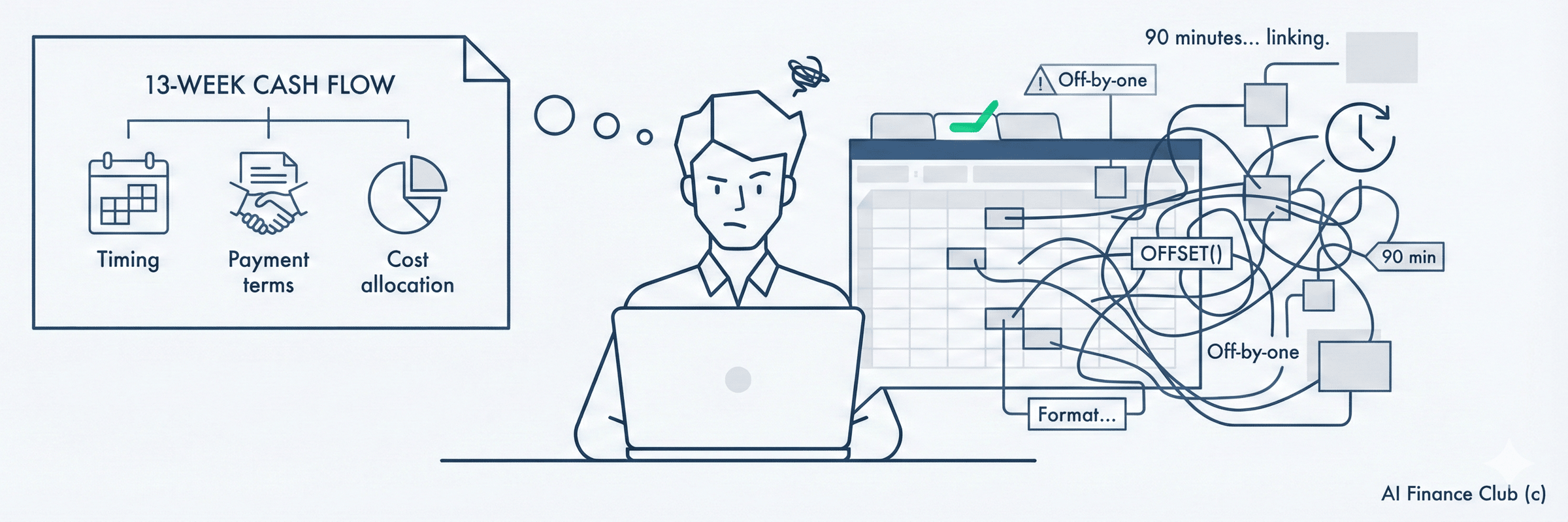 You already know how a 13-week cash flow should work. You understand receipt timing, payment terms, and cost allocation, and the logic is clear in your head.