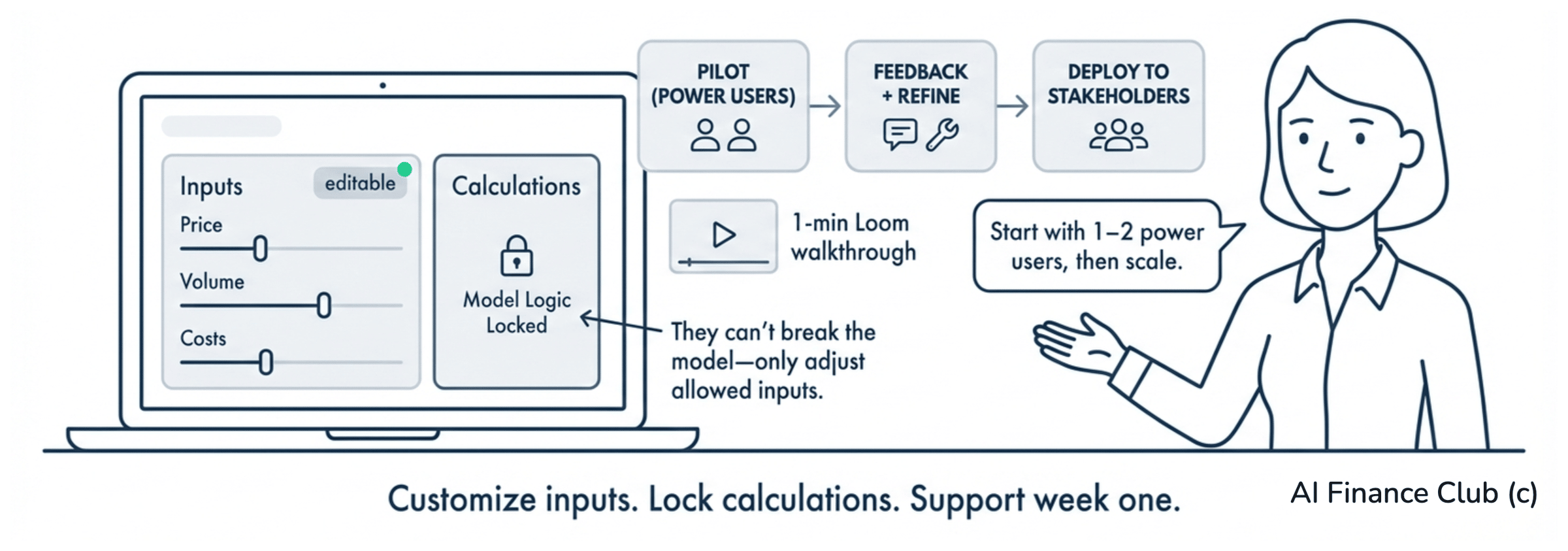 Plus, you can control which variables business partners can adjust and which calculations remain locked. They can't accidentally break the model because they can only adjust the inputs you've allowed them to access.